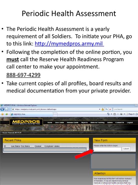 Medical readiness portal to enhance army mission. It electronically stores evaluation reports, some medical read more, Click on periodic health assessment and complete member portion. Area i area ii area iii area iv camp carroll. Learn how to access medpros, pha, and other features.